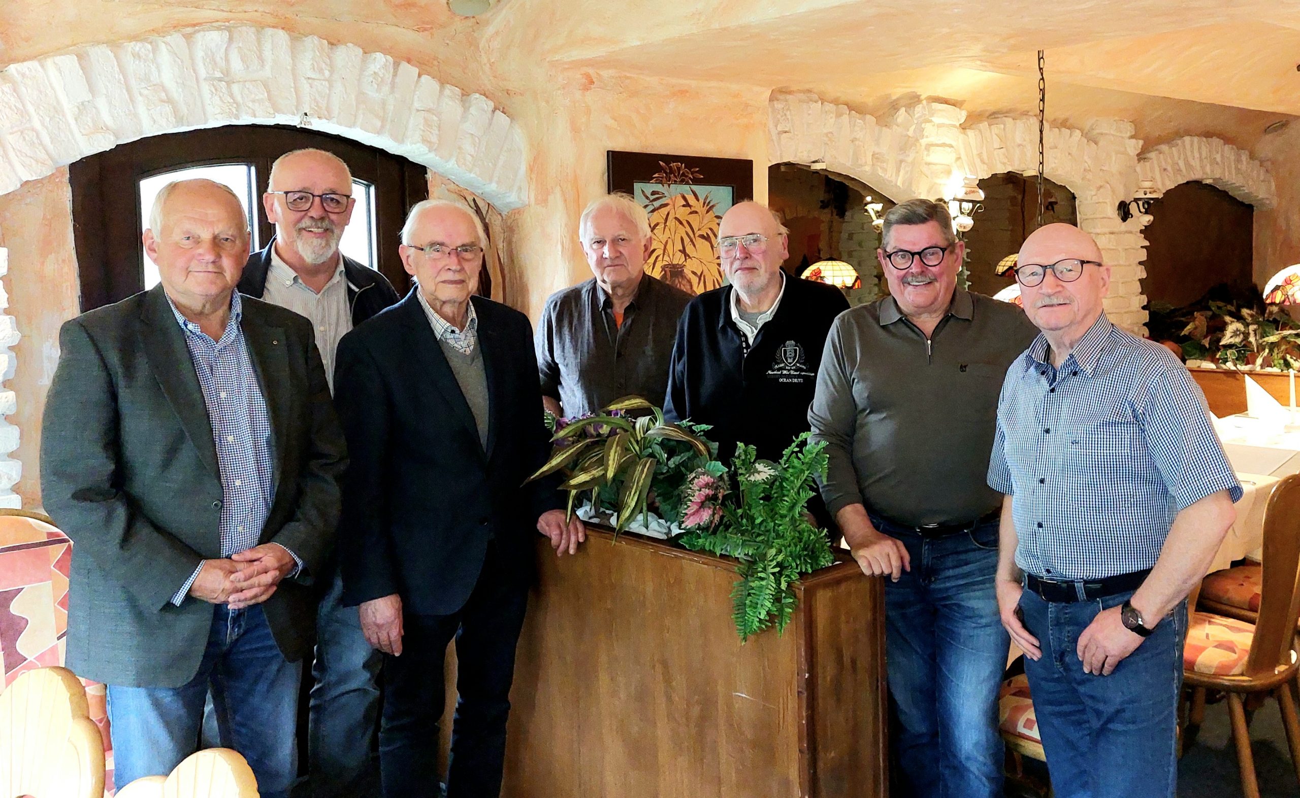 „Alle Jahre wieder ….“ ist nicht nur der Titel eines Weihnachtsliedes, sondern für Abi`71 eine Zeit des Wiedersehens. „Gegen 12.00 Uhr im Haus Gloe“ waren wir verabredet. Eine leider immer kleiner werden Schar fand sich ein. Neben unserem allzeit beliebten „Pauker“ Bernhard Sporkmann (90 Lenze jung) waren es 7 – aus seiner Sicht „heranwachsende“ – ehemalige Kameraden unserer Abschlussklassen. Die Stimmung und die kulinarische Versorgung durch den Service war wieder sehr gut und Gesprächsthemen sowie Anekdoten gingen uns wie immer nicht aus. So hat die Gemeinschaft beschlossen, sich daselbst im nächsten Jahr wieder zu treffen. Es ist dann das Zwischenjubiläum „55“. Nach knapp 3 Stunden – Helmut Schulte rückte schon etwas füher ab und ist leider nicht auf dem Foto – löste sich die Gemeinschaft auf und strebte dem heimatlichen Herd zu. Rundum gelunden der Stammtisch. In 2026 gibt’s wie vereinbart das nächste Wiedersehen.