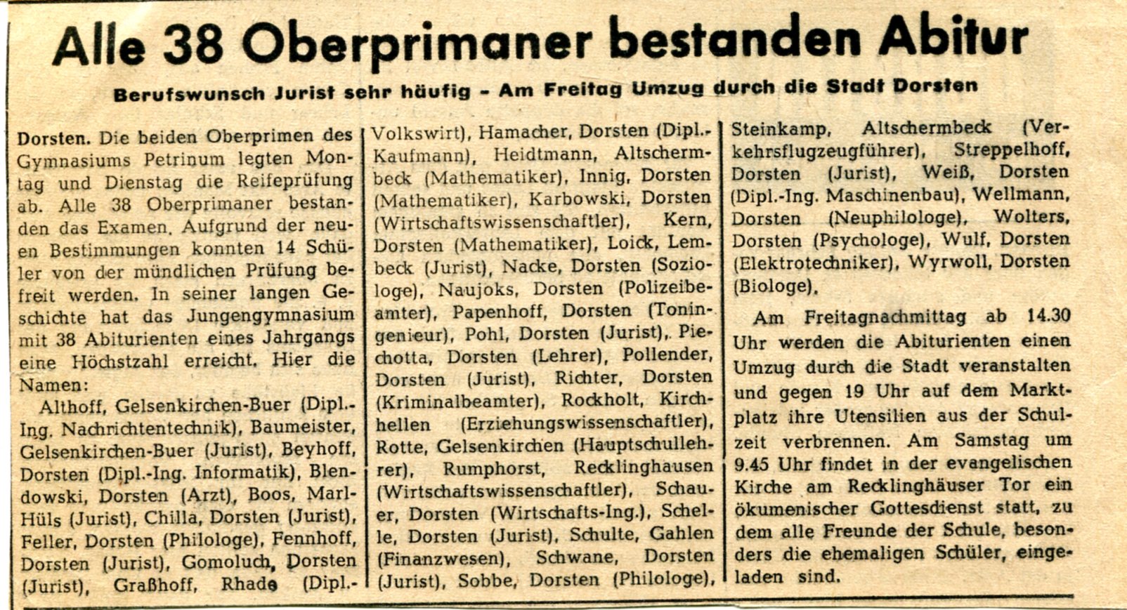 Ein paar Tage vor der Feier zum Goldenen Abitur sandte mir Holger Wellmann ein nettes Fundstück: Unsere Berufswünsche, zumindest die, die wir dem Redakteur der Dorstener Zeitung damals in den Block diktiert haben.
